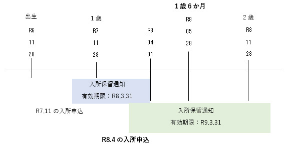 例 2月生まれの子を2月1日入所で申込もうとしたが、保育所が2月及び3月の入所受付を行っておらず4月1日入所となる場合